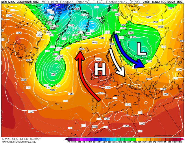 Ook woensdag, donderdag, en vrijdag, blijft het rustig en droog weer met een mix van zon en wolkenvelden. De voor-Alpen blijven gevoelig voor hochnebel. Met een steeds vlakkere luchtdrukverdeling en aanvoer van lucht vanaf het noorden wordt er stilaan koelere lucht aangevoerd waardoor de temperaturen gestaag achteruit gaan. Drastisch zeker nog niet, maar het is een begin. Tegen zaterdag/zondag lijkt er dan een afgesnoerde depressie van over de Atlantische Oceaan naar Frankrijk te kunnen schuiven. Deze kan mogelijk wisselvallig weer met zich meebrengen, maar voorlopig nog allemaal op de lange, onbetrouwbare termijn.