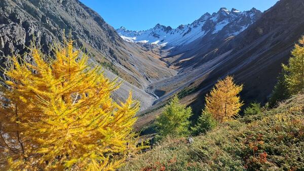 Wat was het een prachtig weekend in de Alpen. Veel zon, weinig wind, hoge temperaturen. Het is nog geen wintersportweer, maar nog wel wandelweer... En hogerop kunnen de vroege vogels zich al uitleven in sommige gletsjerskigebieden. Deze periode, "Indian Summer", "Goldener Oktober", "altweibersommer", komt quasi elk jaar voor. We noemen het een singulariteit.